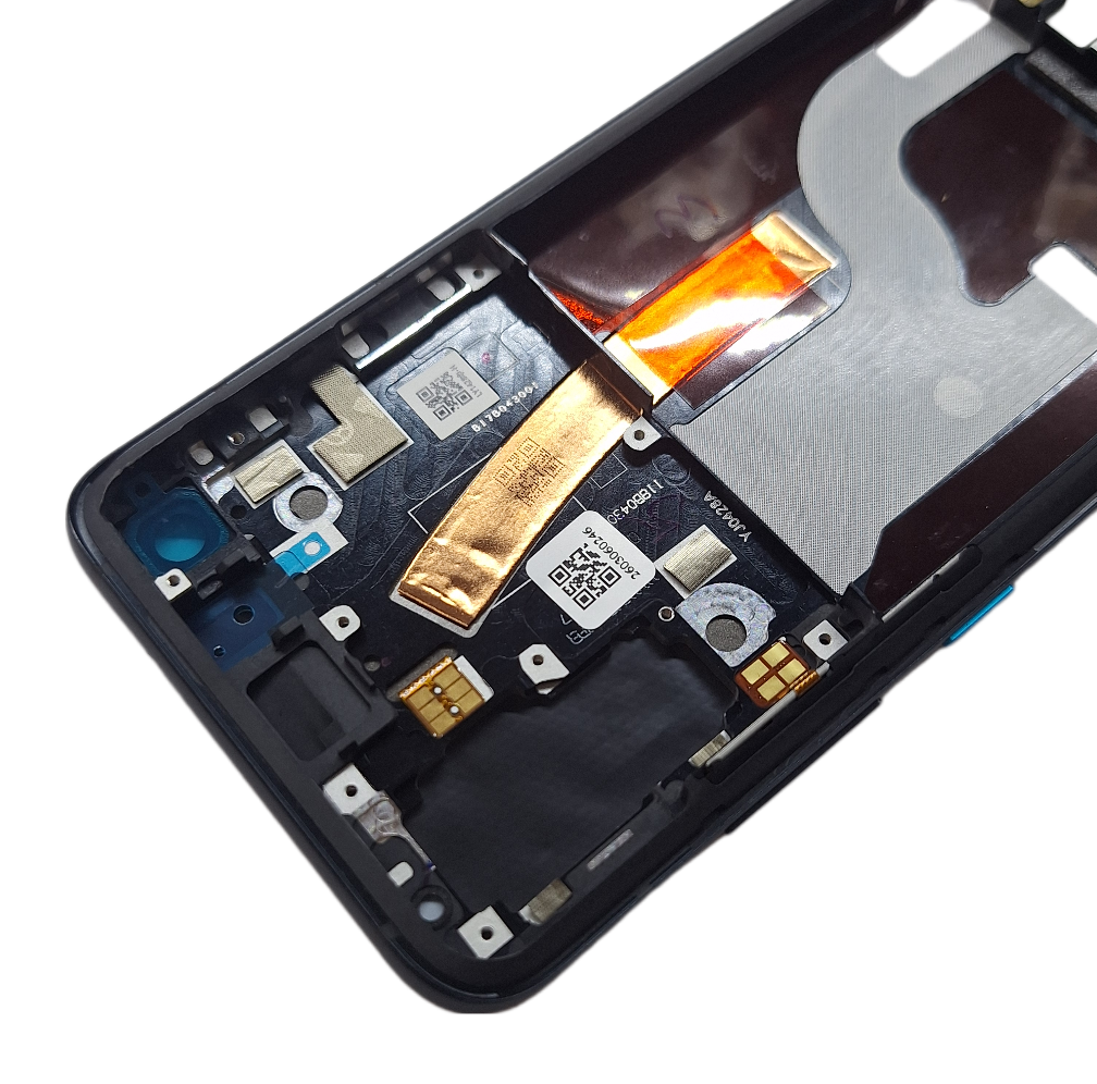 Element zawiera ramkę wyświetlacza wraz z korpusem, co ułatwia montaż ekranu oraz zapewnia stabilne osadzenie wszystkich komponentów telefonu.