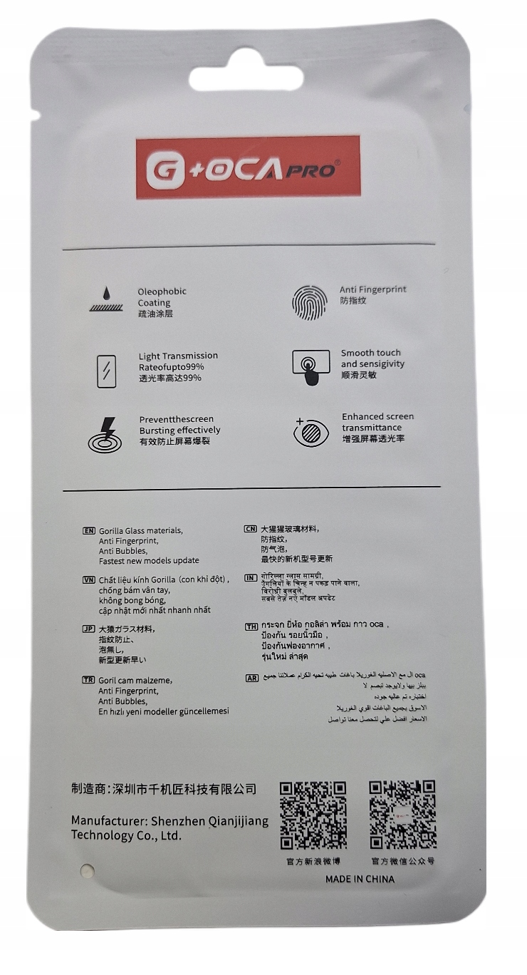 Szybka posiada fabrycznie nałożony klej OCA, co gwarantuje: